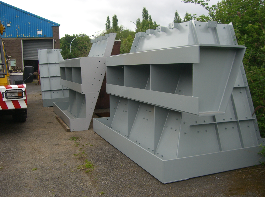 One of the first jobs we undertook in our new premises. For this project, we made various conveyor support steelworks (conveyor length was approx. 100 meters) and one large bunker. The top half of the bunker was made in 4 quarters approx. 4.5 Ton Each and the bottom section in one approx. 5.5 ton. All these were lined in Hardox. We then packed the components in containers for overseas shipping. After the completion of this project, we were then given a repeat order.